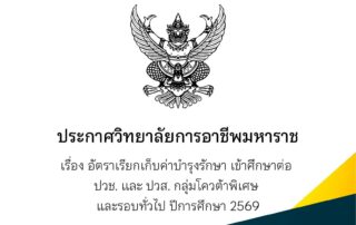ประกาศวิทยาลัยฯ เรื่อง อัตราเรียกเก็บค่าบำรุงรักษาเข้าศึกษาต่อ ปวช. และ ปวส. กลุ่มโควต้าพิเศษ และรอบทั่วไป ปีการศึกษา 2569