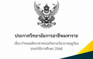 ประกาศวิทยาลัยฯ เรื่อง กำหนดอัตราค่าหน่วยกิตรายวิชาภาคเรียนฤดูร้อน ประจำปีการศึกษา 2568