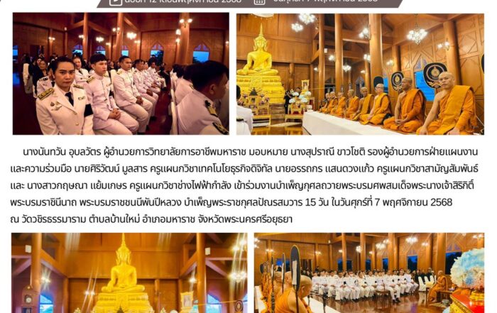 ศิริวัฒน์ มูลสาร2025-11-10T16:27:21+07:00โครงการส่งเสริมศิลปวัฒนธรรมไทย ประเพณีลอยกระทง ประจำปีการศึกษา 2568 ซึ่งดำเนินการโดย ชมรมวิชาชีพการบัญชี แผนกวิชาการบัญชี ในวันพุธที่ 5 พฤศจิกายน 2568 ณ หอประชุมชั้น 3 วิทยาลัยการอาชีพมหาราชศิริวัฒน์ มูลสาร2025-11-10T16:27:21+07:0010/11/2025|0 Comments
