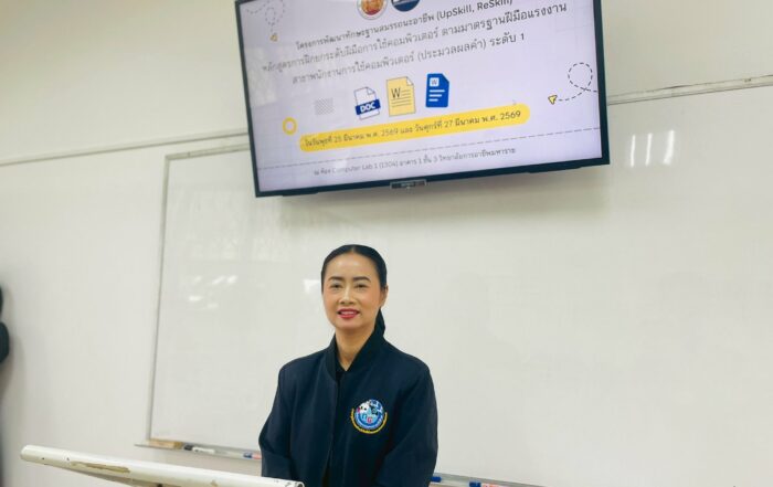 ศิริวัฒน์ มูลสาร2026-04-03T16:29:15+07:00โครงการพัฒนาทักษะฐานสมรรถนะอาชีพ (UpSkill , ReSkill) หลักสูตรการฝึกยกระดับฝีมือการใช้คอมพิวเตอร์ ตามมาตรฐานฝีมือแรงงาน สาขาพนักงานการใช้คอมพิวเตอร์ ระดับ 1 พร้อมมอบเกียรติบัตร ในวันพุธที่ 25 มีนาคม 2569 และวันศุกร์ที่ 27 มีนาคม 2569 ณ แผนกวิชาเทคโนโลยีธุรกิจดิจิทัล วิทยาลัยการอาชีพมหาราชศิริวัฒน์ มูลสาร2026-04-03T16:29:15+07:0003/04/2026|0 Comments