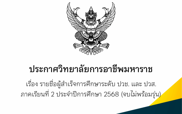 โชติกา ประภากุลธวัช2026-04-03T16:21:11+07:00ประกาศวิทยาลัยฯ เรื่อง รายชื่อผู้สำเร็จการศึกษาระดับ ปวช. และ ปวส. ภาคเรียนที่ 2 ประจำปีการศึกษา 2568 (จบไม่พร้อมรุ่น)โชติกา ประภากุลธวัช2026-04-03T16:21:11+07:0003/04/2026|0 Comments