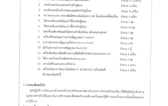 • ประกาศวิทยาลัยฯ เรื่อง ร่างประกวดราคาซื้อห้องปฏิบัติการเขียนแบบเทคนิคไฟฟ้าด้วยโปรแกรมระบบคอมพิวเตอร์ ด้วยวิธีประกวดราคาอิเล็กทรอนิกส์ (e-bidding) ครั้งที่ 2