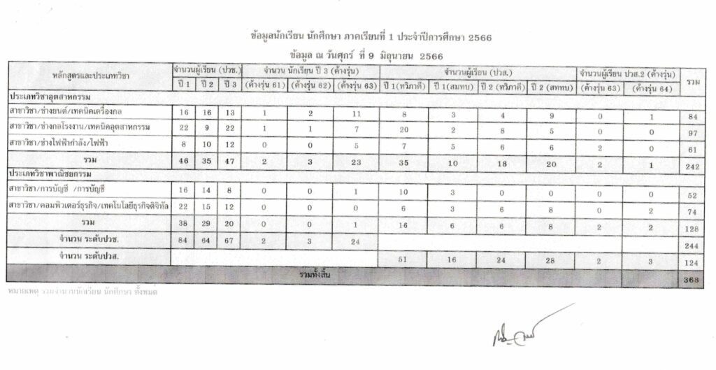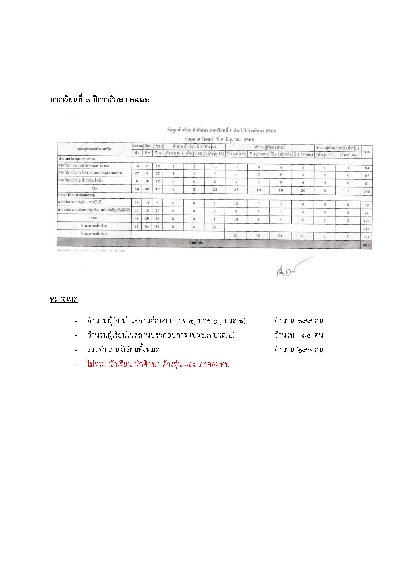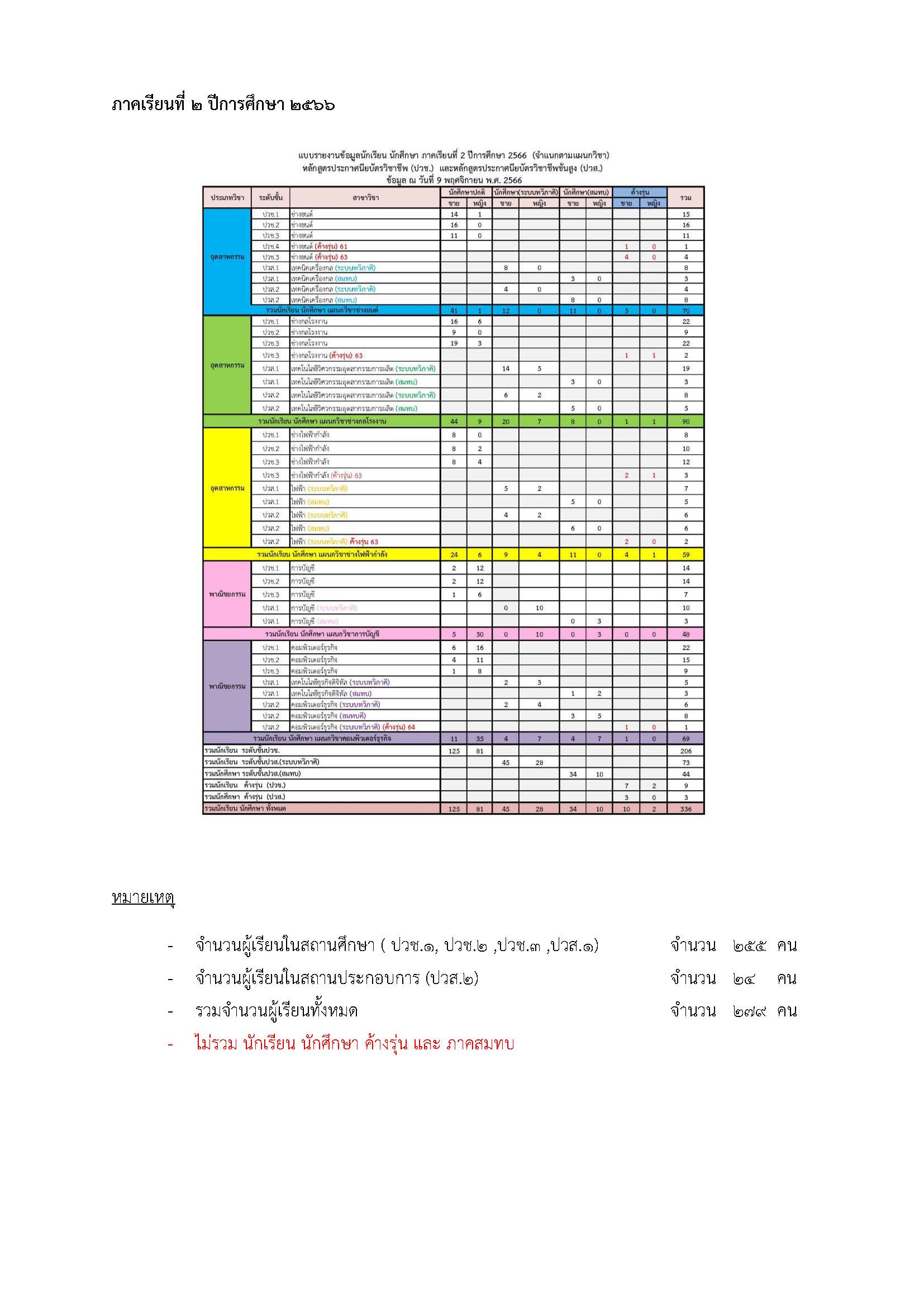 จำนวนนักเรียน นักศึกษา ภาคเรียนที่ 1/2566 –> คลิ๊ก ภาคเรียนที่ 2/2566 –> คลิ๊ก