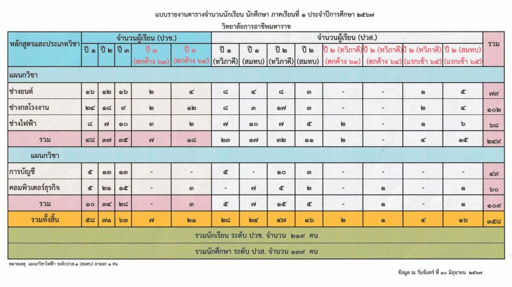 จำนวนนักเรียน นักศึกษา ภาคเรียนที่ 1/2568 –> คลิ๊ก ภาคเรียนที่ 2/2568 –> คลิ๊ก
