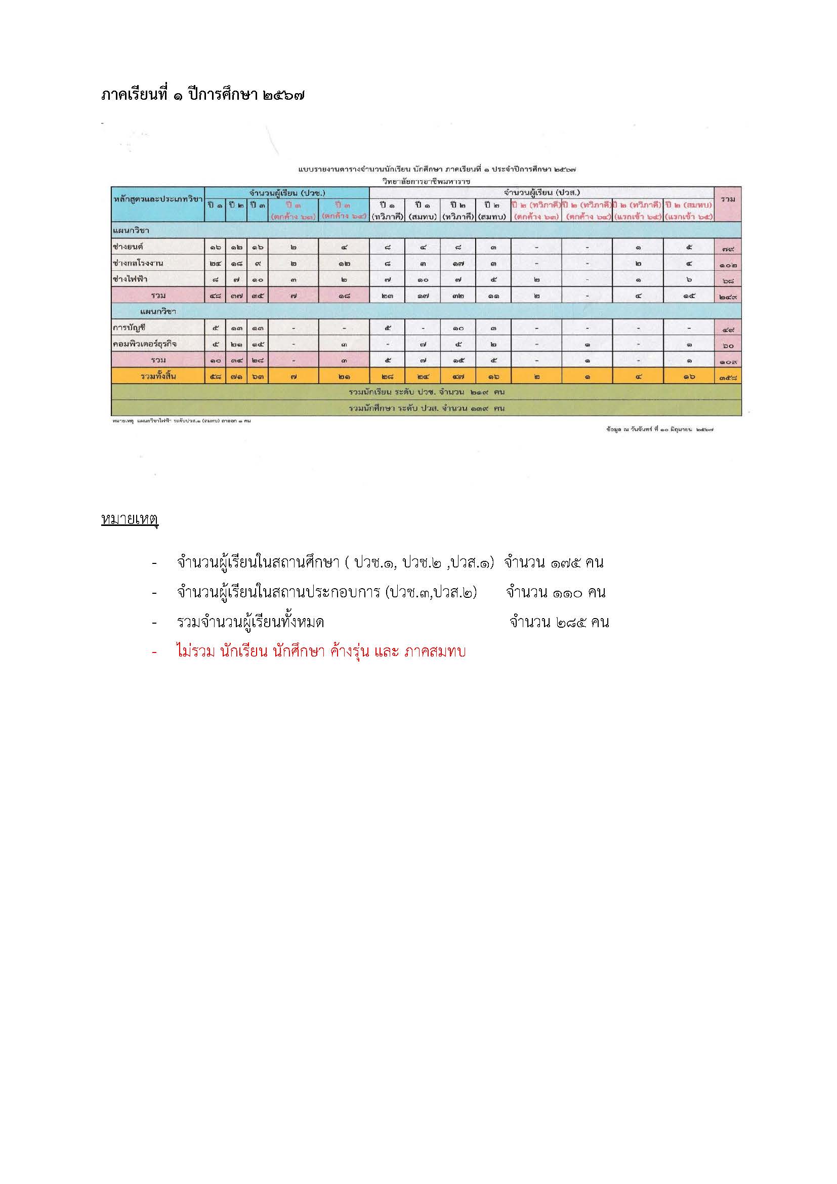 จำนวนนักเรียน นักศึกษา ภาคเรียนที่ 1/2567 –> คลิ๊ก ภาคเรียนที่ 2/2567 –> คลิ๊ก