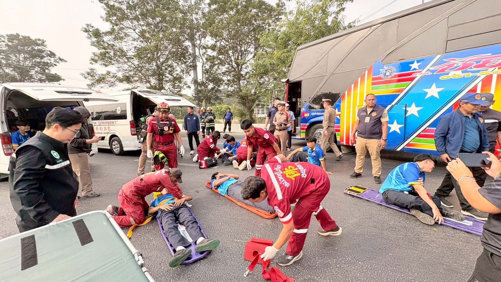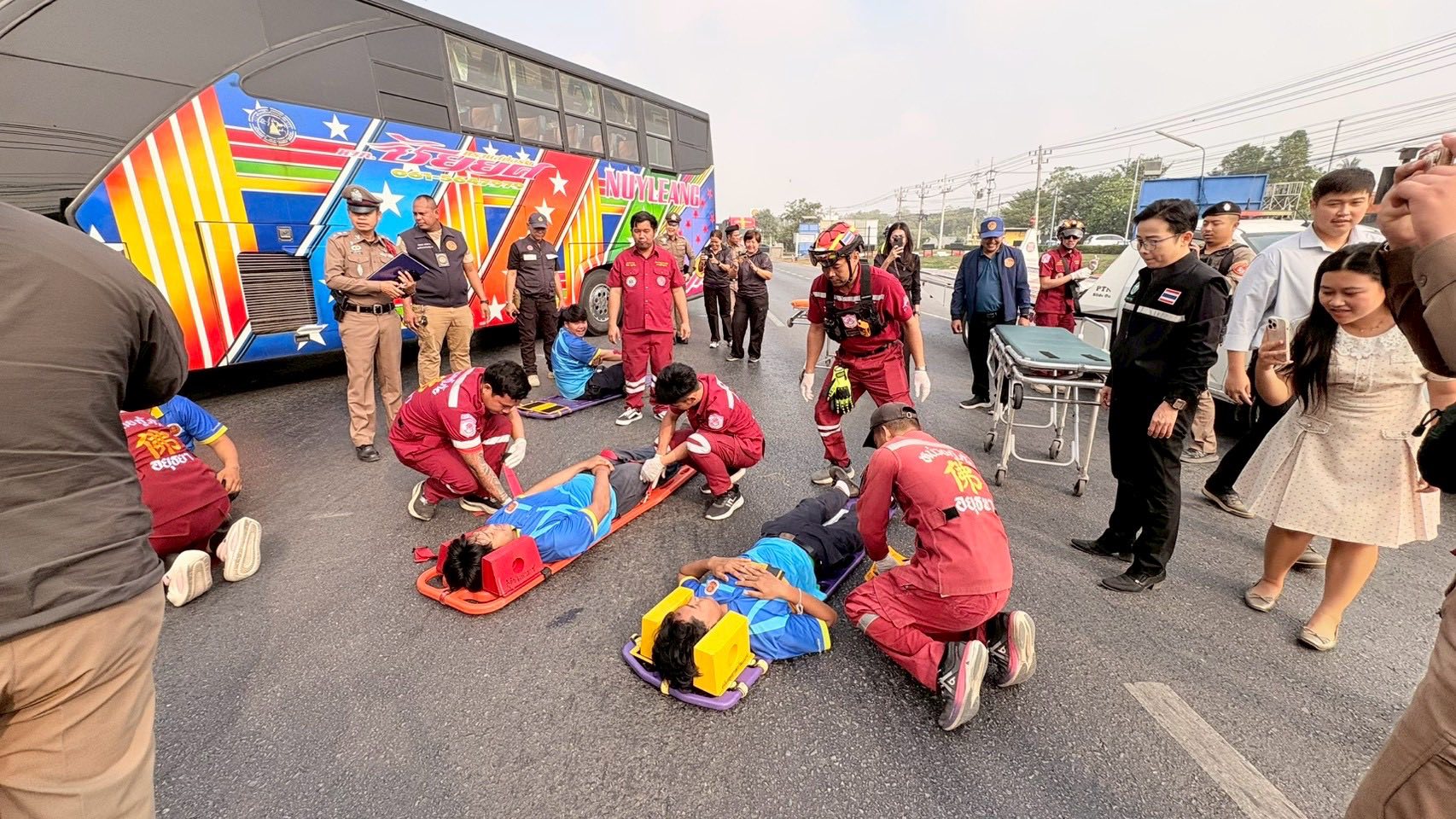 ซักซ้อมแผนเผชิญเหตุอุบัติเหตุใหญ่บนท้องถนน ร่วมกับ เจ้าหน้าที่ตำรวจ สถานีตำรวจภูธรมหาราช อำเภอมหาราช จังหวัดพระนครศรีอยุธยา ในวันพุธที่ 21 มกราคม 2569 ณ ป้อมตำรวจ สายเอเชียบ้านใหม่ อำเภอมหาราช จังหวัดพระนครศรีอยุธยา