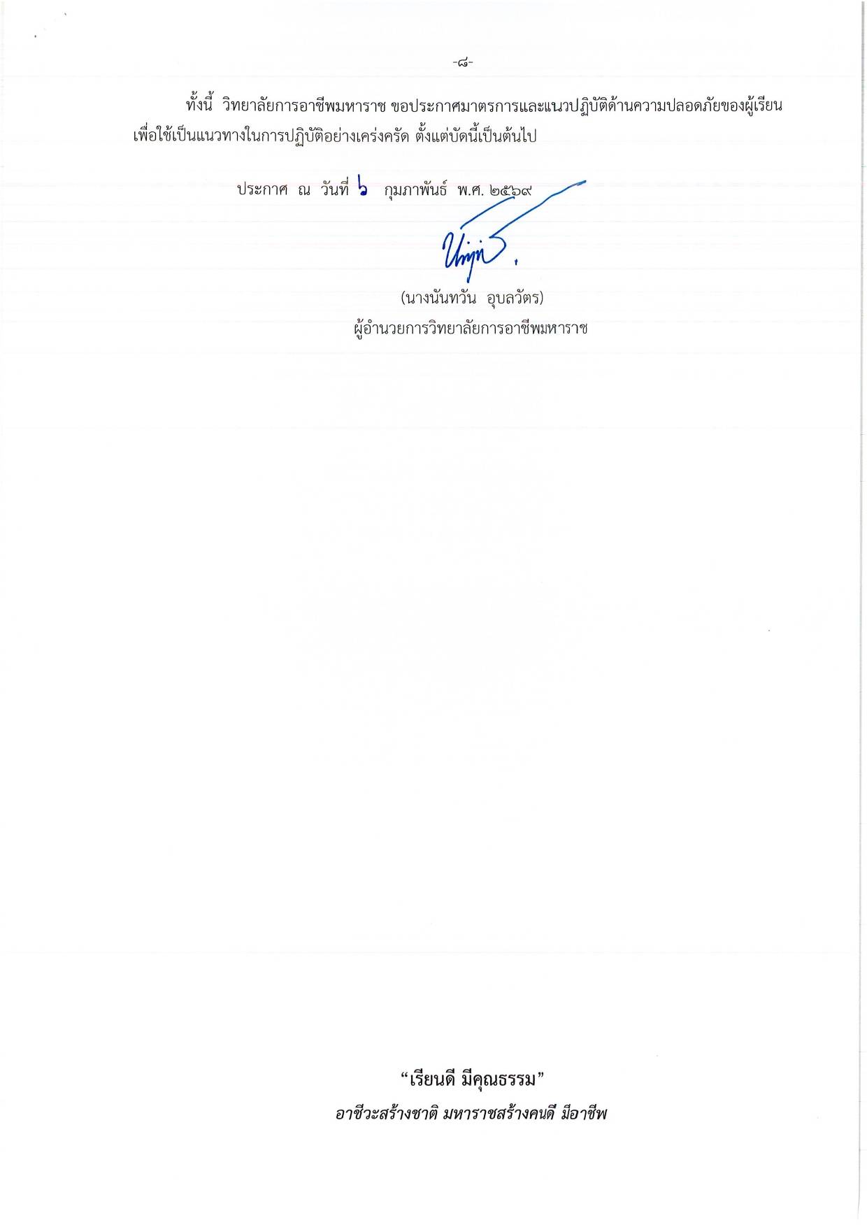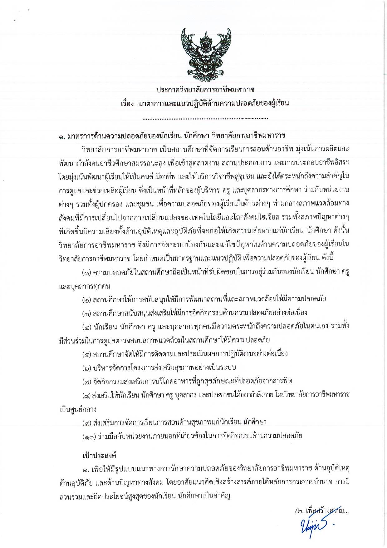 View Larger Image ประกาศวิทยาลัยฯ เรื่อง มาตรการและแนวปฏิบัติด้านความปลอดภัยของผู้เรียน อ่านรายละเอียดเพิ่มเติมได้ตามไฟล์แนบ ประกาศวิทยาลัยฯ เรื่อง มาตรการและแนวปฏิบัติด้านความปลอดภัยของผู้เรียน By โชติกา ประภากุลธวัช|2026-02-26T16:37:03+07:0026/02/2026|ประกาศ| Share This Story, Choose Your Platform! FacebookXRedditLinkedInWhatsAppTumblrPinterestVkXingEmail About the Author: โชติกา ประภากุลธวัช Related Posts ประกาศวิทยาลัยฯ เรื่อง รายชื่อคณะกรรมการดำเนินงาน อวท. ที่ได้รับการยกย่องให้เป็นตัวอย่างที่ดี ระดับสถานศึกษา ประจำปีการศึกษา 2568 Gallery ประกาศวิทยาลัยฯ เรื่อง รายชื่อคณะกรรมการดำเนินงาน อวท. ที่ได้รับการยกย่องให้เป็นตัวอย่างที่ดี ระดับสถานศึกษา ประจำปีการศึกษา 2568 ประกาศวิทยาลัยฯ เรื่อง รายชื่อผู้มีสิทธิ์เข้าร่วมพิธีมอบใบประกาศนียบัตร ผู้สำเร็จการศึกษา ประจำปีการศึกษา 2568 Gallery ประกาศวิทยาลัยฯ เรื่อง รายชื่อผู้มีสิทธิ์เข้าร่วมพิธีมอบใบประกาศนียบัตร ผู้สำเร็จการศึกษา ประจำปีการศึกษา 2568 ประกาศวิทยาลัยฯ เรื่อง การจัดการเรียนการสอนภาคเรียนฤดูร้อน ประจำปีการศึกษา 2568 (ฉบับแก้ไข) Gallery ประกาศวิทยาลัยฯ เรื่อง การจัดการเรียนการสอนภาคเรียนฤดูร้อน ประจำปีการศึกษา 2568 (ฉบับแก้ไข) ประกาศวิทยาลัยฯ เรื่อง กำหนดอัตราค่าหน่วยกิตรายวิชาภาคเรียนฤดูร้อน ประจำปีการศึกษา 2568 Gallery ประกาศวิทยาลัยฯ เรื่อง กำหนดอัตราค่าหน่วยกิตรายวิชาภาคเรียนฤดูร้อน ประจำปีการศึกษา 2568