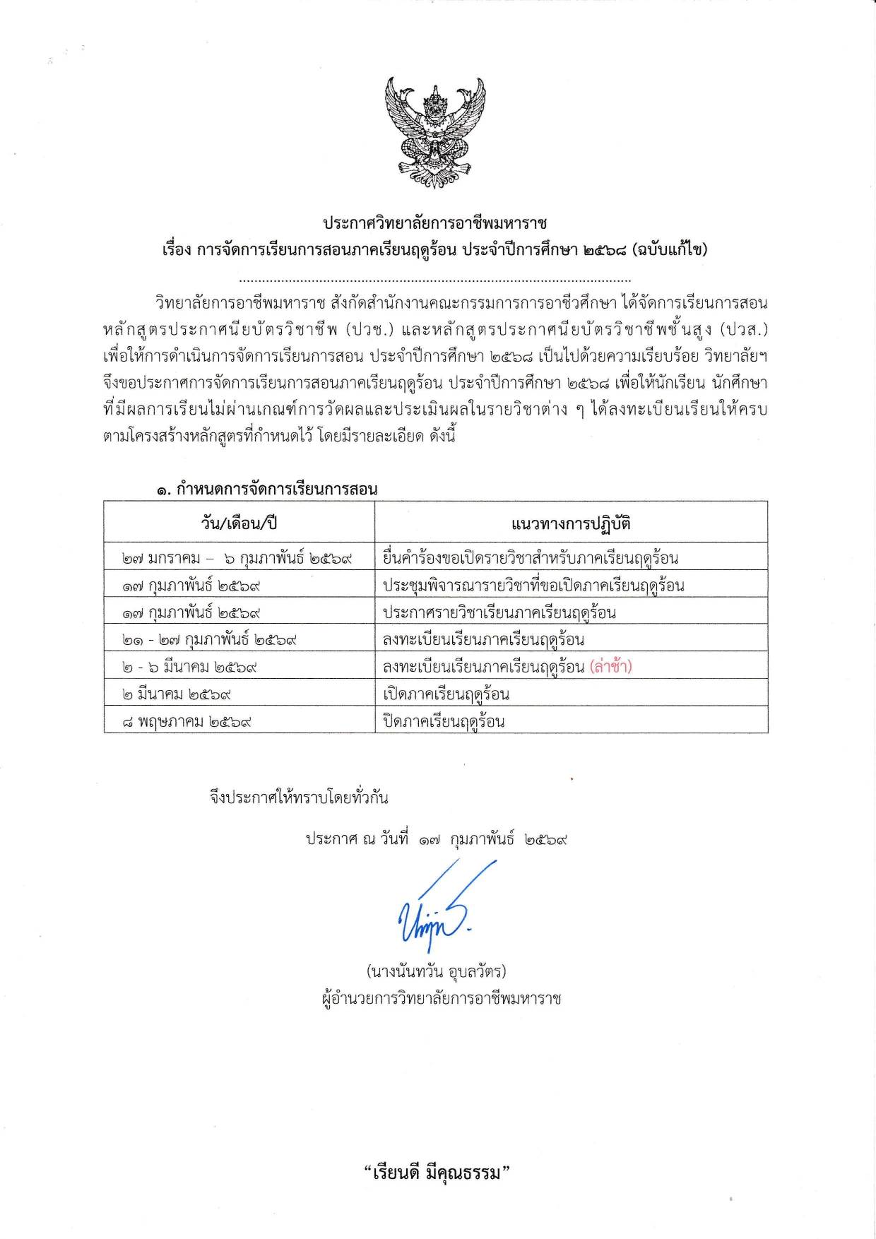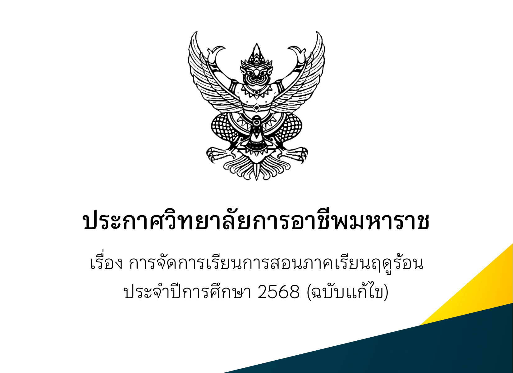 ประกาศวิทยาลัยฯ เรื่อง การจัดการเรียนการสอนภาคเรียนฤดูร้อนประจำปีการศึกษา 2568 (ฉบับแก้ไข)