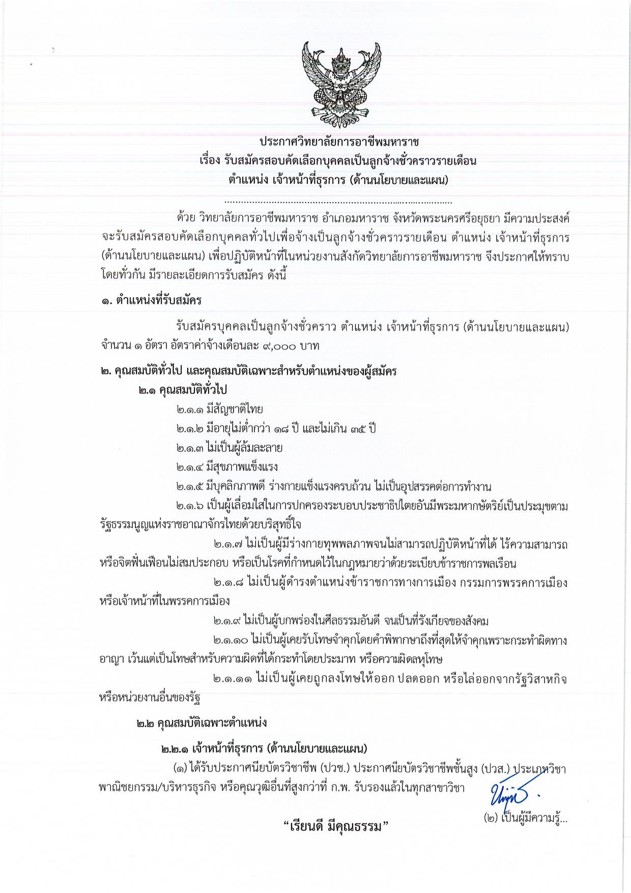 ประกาศวิทยาลัยฯ เรื่อง รับสมัครสอบคัดเลือกบุคคลเป็นลูกจ้างชั่วคราวรายเดือน ตำแหน่ง เจ้าหน้าที่ธุรการ (ด้านนโยบายและแผน)