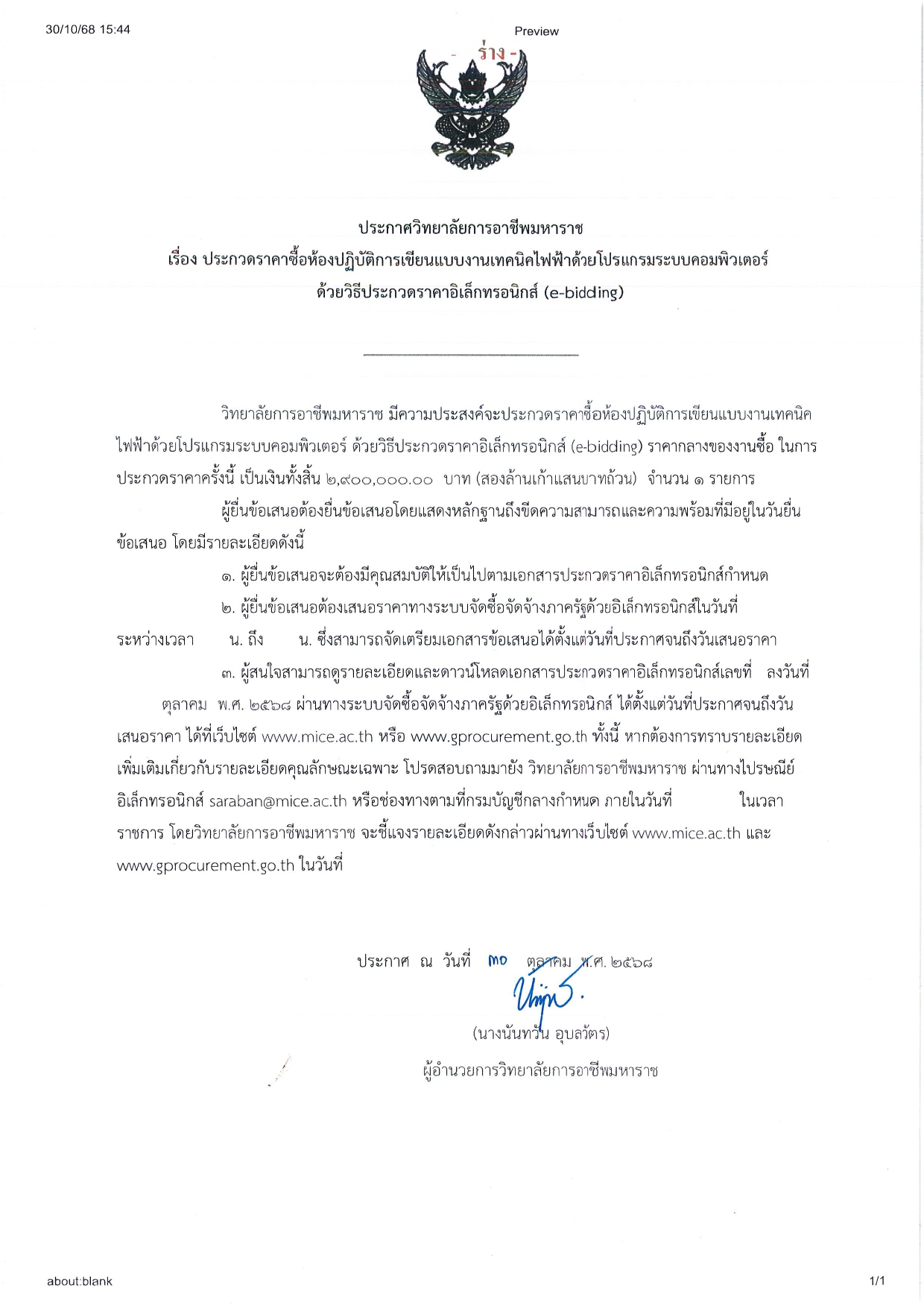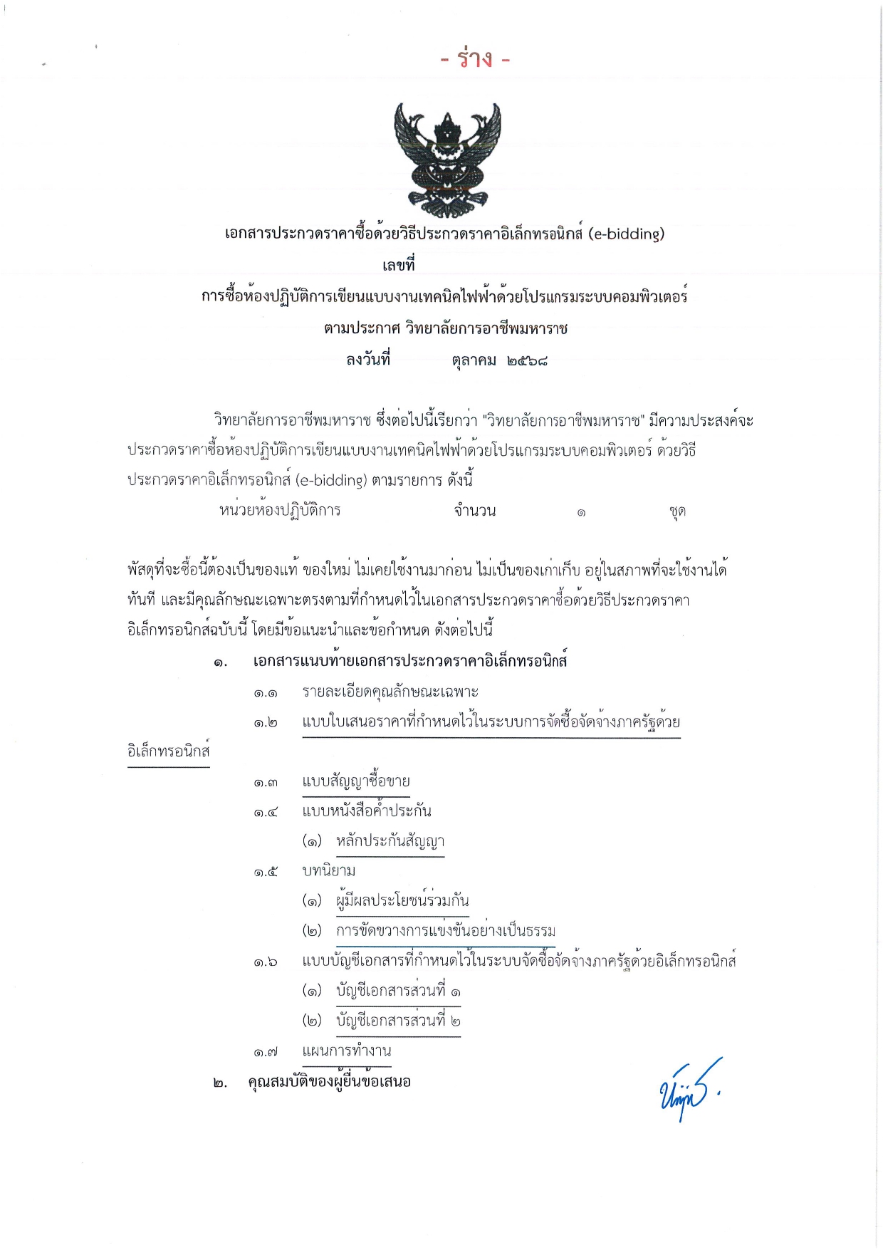 ร่าง – ประกาศวิทยาลัยฯ เรื่อง ประกวดราคาซื้อห้องปฏิบัติการเขียนแบบเทคนิคไฟฟ้าด้วยโปรแกรมระบบคอมพิวเตอร์ ด้วยวิธีประกวดราคาอิเล็กทรอนิกส์ (e-bidding)