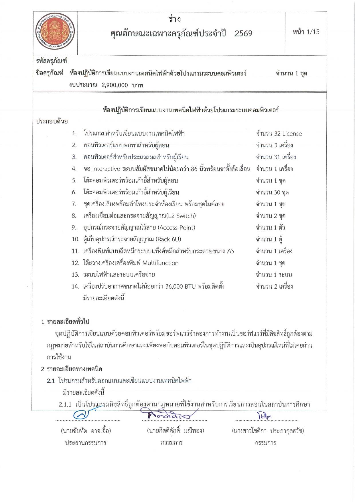 ร่าง – คุณลักษณะครุภัณฑ์ ห้องปฏิบัติการเขียนแบบเทคนิคไฟฟ้าด้วยโปรแกรมระบบคอมพิวเตอร์