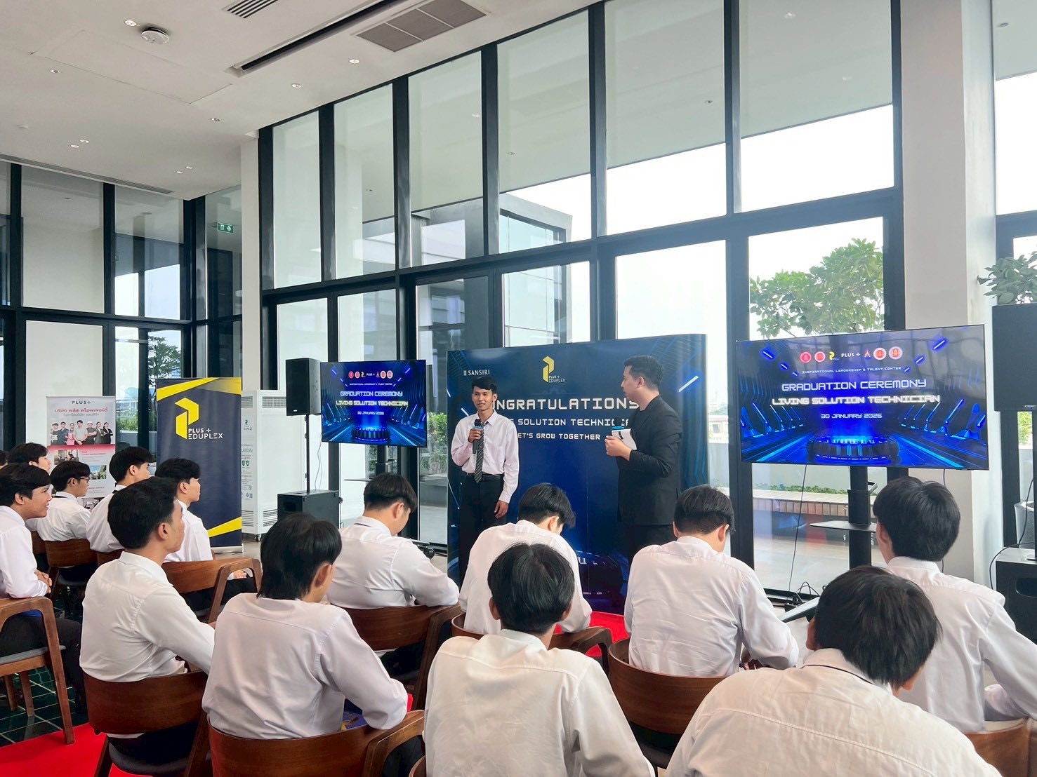 พิธีมอบใบประกาศให้กับนักศึกษาที่สำเร็จการฝึกอาชีพ กับ บริษัท พลัส พร็อพเพอร์ตี้ จำกัด ในวันศุกร์ที่ 30 มกราคม 2569 ณ บริษัท พลัส พร็อพเพอร์ตี้ จำกัด อาคารสิริแคมปัส แขวงพระโขนงเหนือ เขตวัฒนา กรุงเทพมหานคร