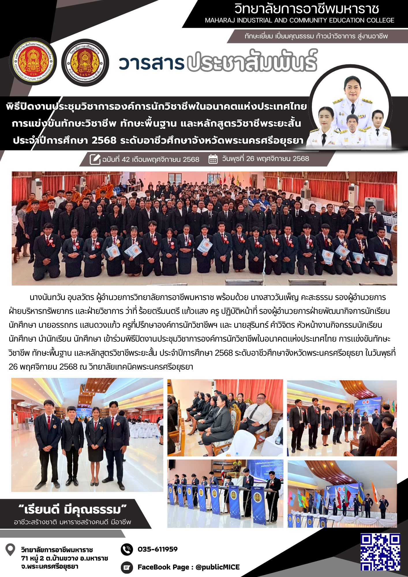 • งานประชุมวิชาการองค์การนักวิชาชีพในอนาคตแห่งประเทศไทย การแข่งขันทักษะวิชาชีพ ทักษะพื้นฐาน และหลักสูตรวิชาชีพระยะสั้น ประจำปีการศึกษา 2568 ระดับอาชีวศึกษาจังหวัดพระนครศรีอยุธยา
