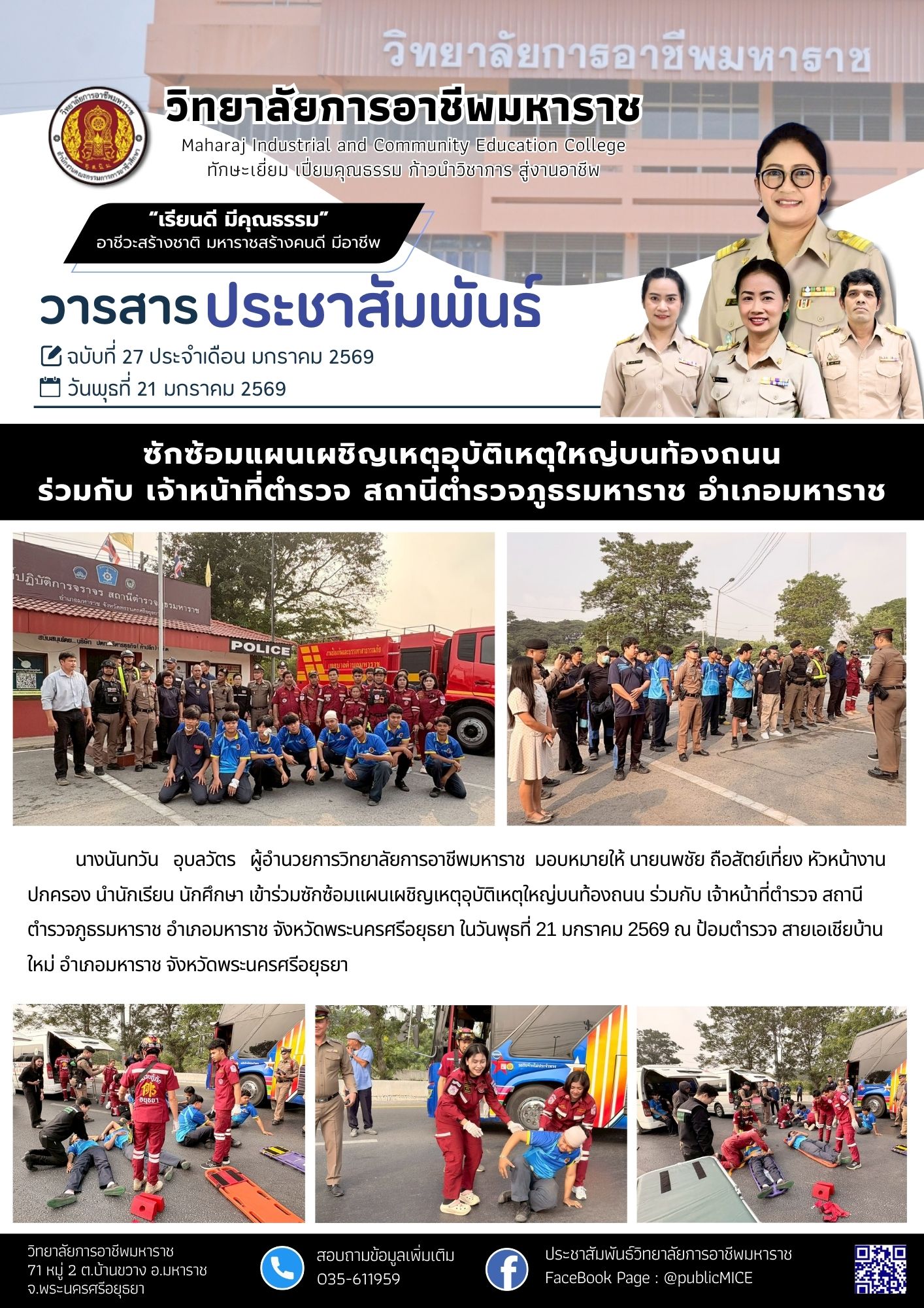 • โครงการเปิดโลกอาชีพสู่รั้ววิทยาลัย ME สร้างคนดี มีอาชีพ ในวันพฤหัสบดีที่ 29 มกราคม 2569 ณ วิทยาลัยการอาชีพมหาราช