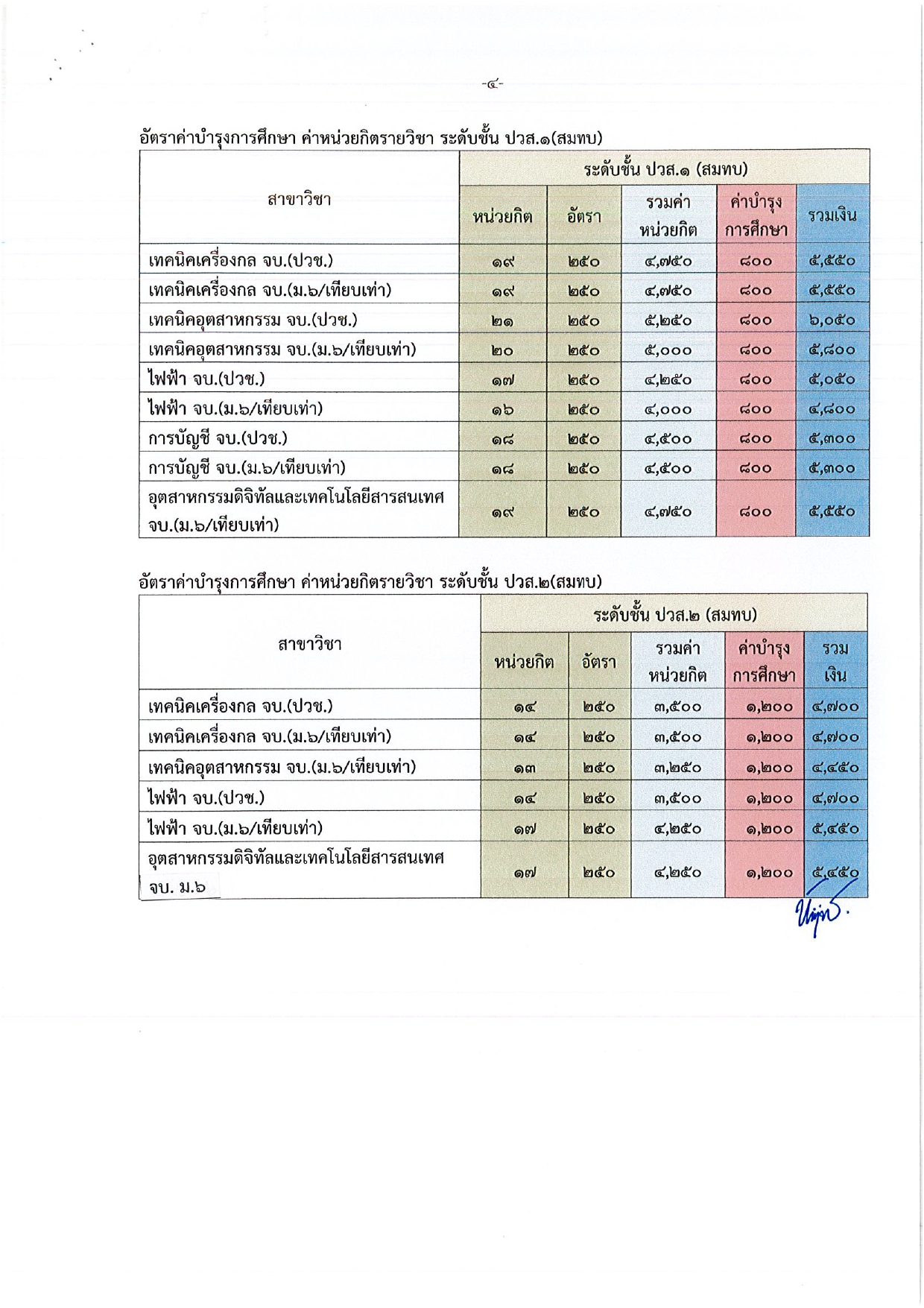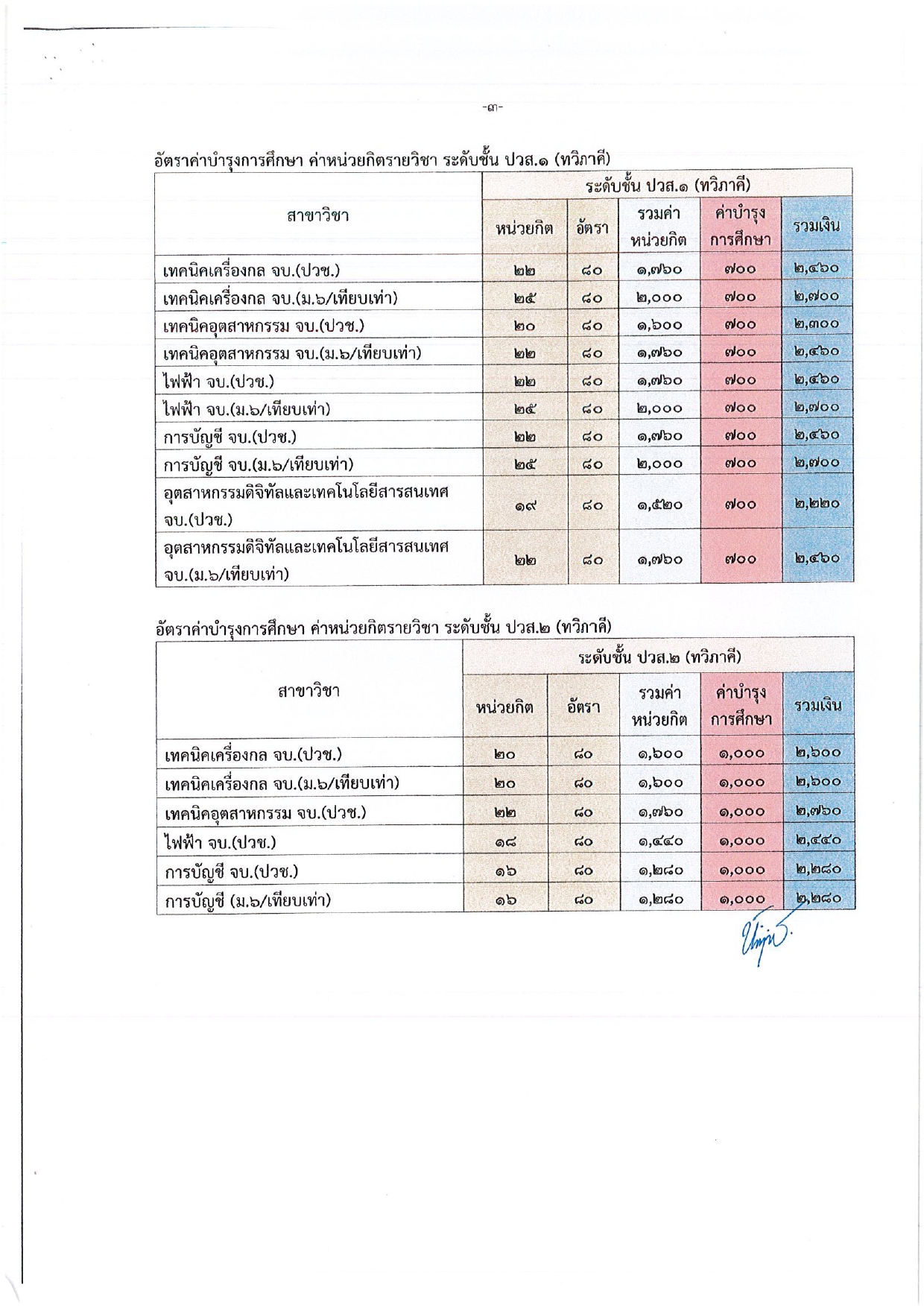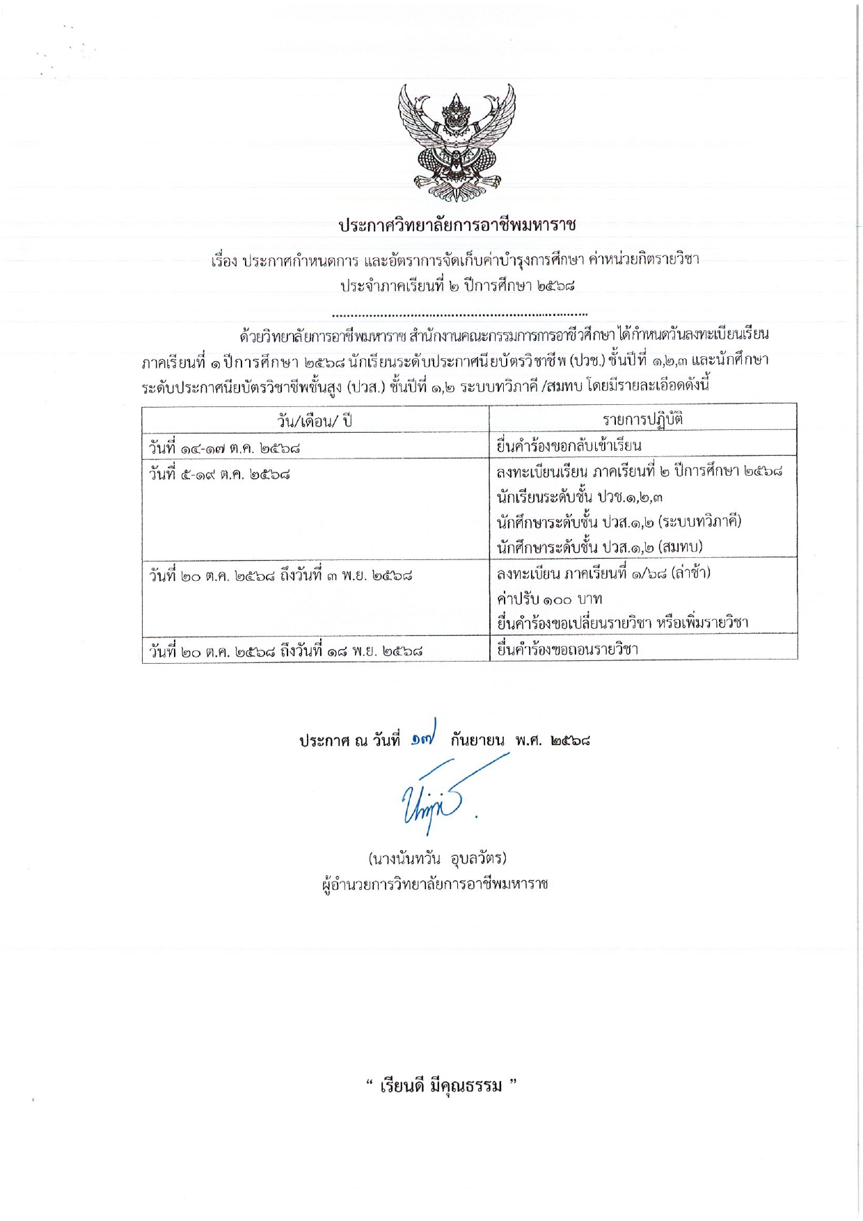 ประกาศวิทยาลัยฯ เรื่อง กำหนดการ และอัตราการจัดเก็บค่าบำรุงการศึกษา ค่าหน่วยกิตรายวิชา ประจำภาคเรียนที่ 2 ปีการศึกษา 2568